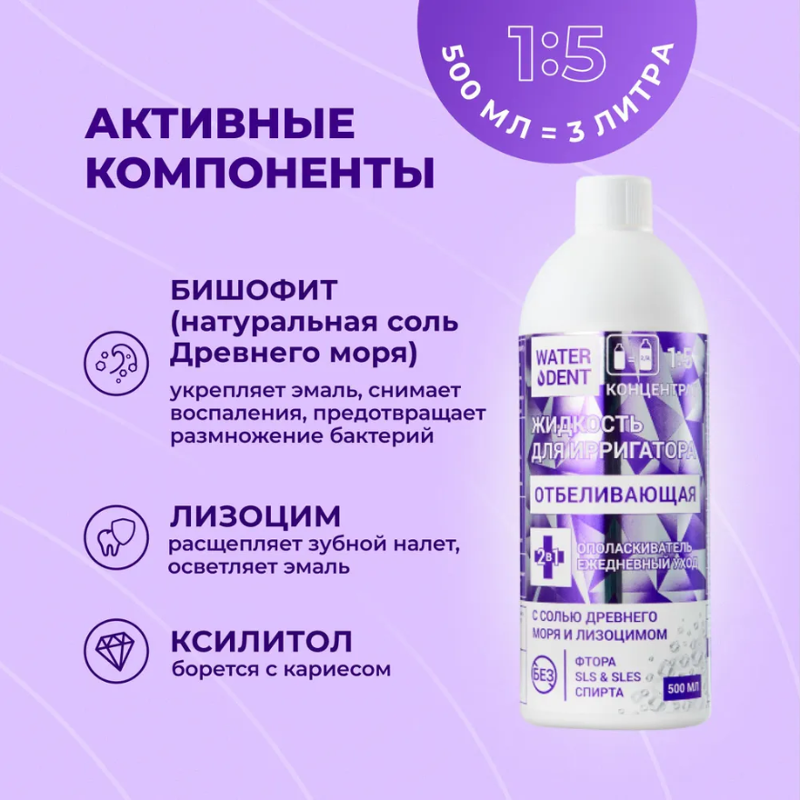 Жидкость для ирригатора + ополаскиватель «Отбеливающая» с солью древнего моря и лизоцимом / Irrigator liquid